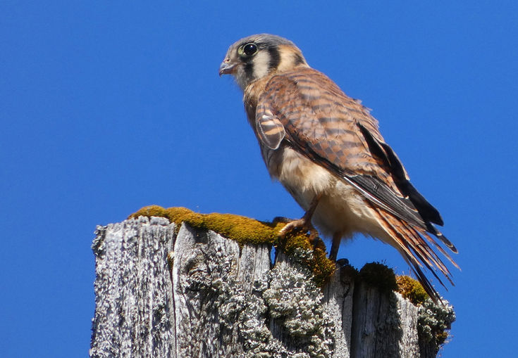 Male kestrel on his favorite perch across the street, June 19, 2024, image by Nancy Partlow, Tumwater WA